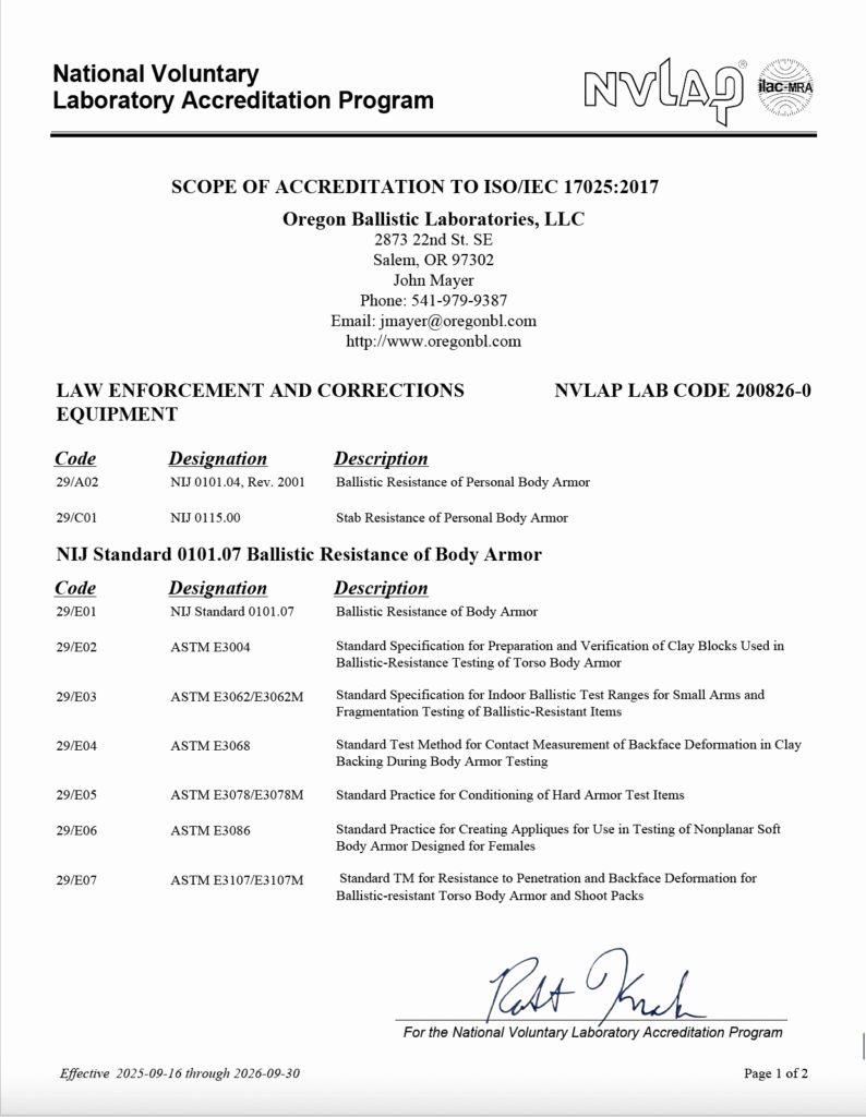Body Armor Testing